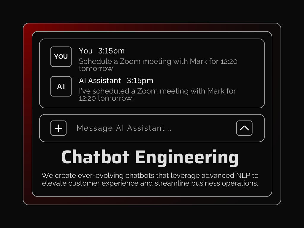 We construct custom chatbots designed to enhance customer interactions and automate routine tasks. Our solutions seamlessly integrate with websites to deliver an engaging user experience.