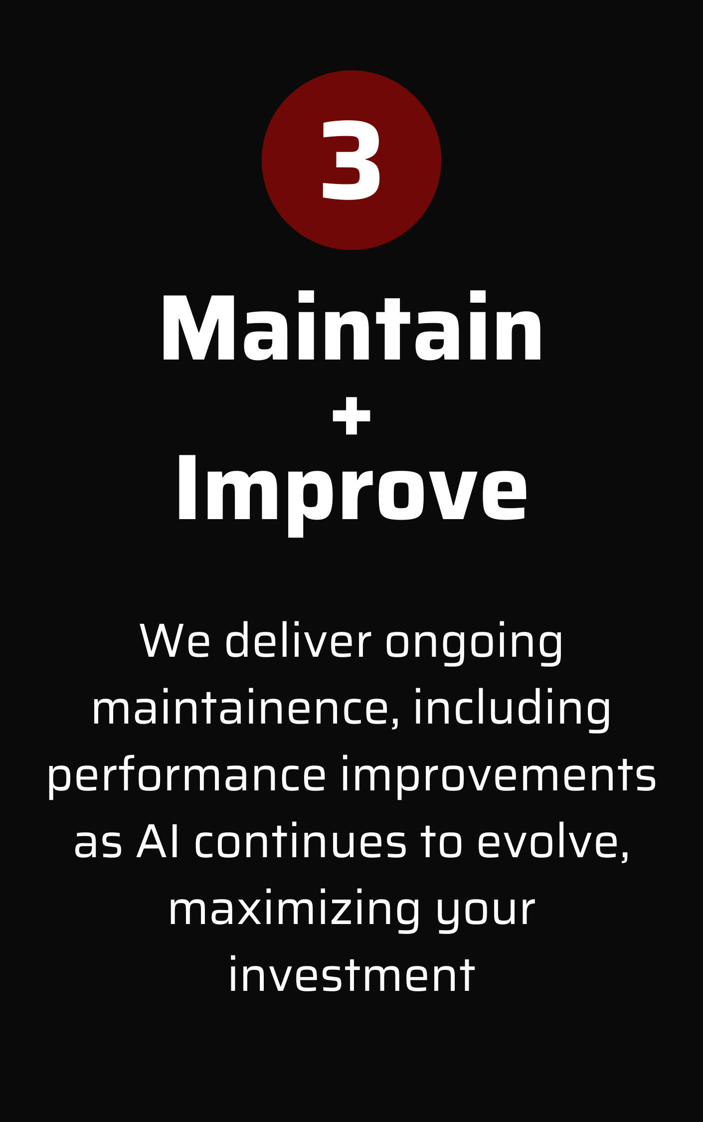 We deliver ongoing maintainence, including performance improvements as AI continues to evolve, maximizing your investment.